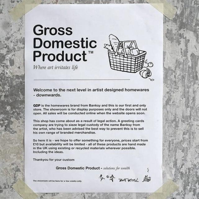 这个问题变成了导火线,Banksy 在 2019 年秋宣布 ta 的新事业 :"国民生产总值(Gross Domestic Product)"商店。