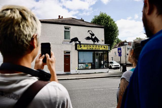 游客们对市民的停留感到困惑。Banksy 这一系列涂鸦创作是在神不知鬼不觉中完成的,只是没有留下任何解释。