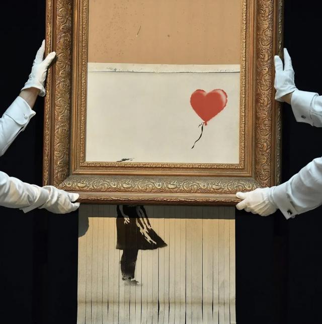 这个“爱情在垃圾桶里”(Love Is In The Bin)》正是之前被切碎的“女孩和汽球”(Girl With Red Balloon)》。