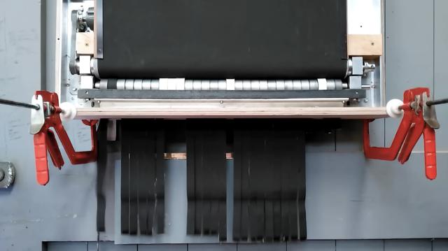 当拍卖槌落下时,惊人的一幕出现了:伴随着警报,相框内的作品开始“自毁”。缓慢下降后,嵌入框中的装置被切成条状碎片。