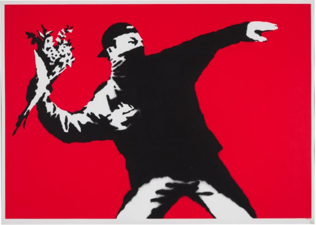这幅画又名《Flower Thrower》或《LIITA》,描绘了一个年轻人扮演激进分子的角色,用方巾遮住下半张脸。他正在把一束花扔作手榴弹或燃烧瓶。虽然姿势明显有攻击性,但他开始发出代表爱情和平的通用符号,而不是武器。