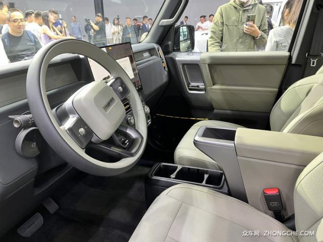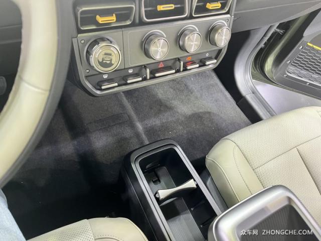 车内设计与外观非常契合,都是硬核设计风格。中控台采用大量直线,配有大型悬浮中控面板,内置主流高通。 8155 支持无线的芯片 CarPlay,方形空调出风口、旋钮和物理按钮设置在中控屏幕下方。副仪表盘和中控台断开,主副驾驶地板采用直通式处理,副仪表盘下方有储物空间。
