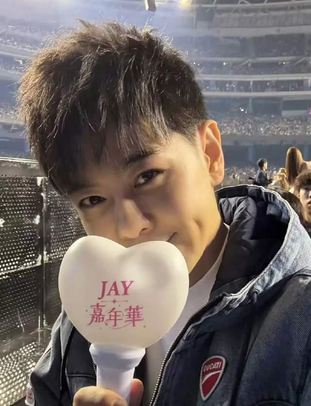 我看到他站在观众台上,尽情地挥舞着荧光棒,沉浸在演唱会上周董解说的歌声中。现场气氛真的很棒,一首脍炙人口的歌。