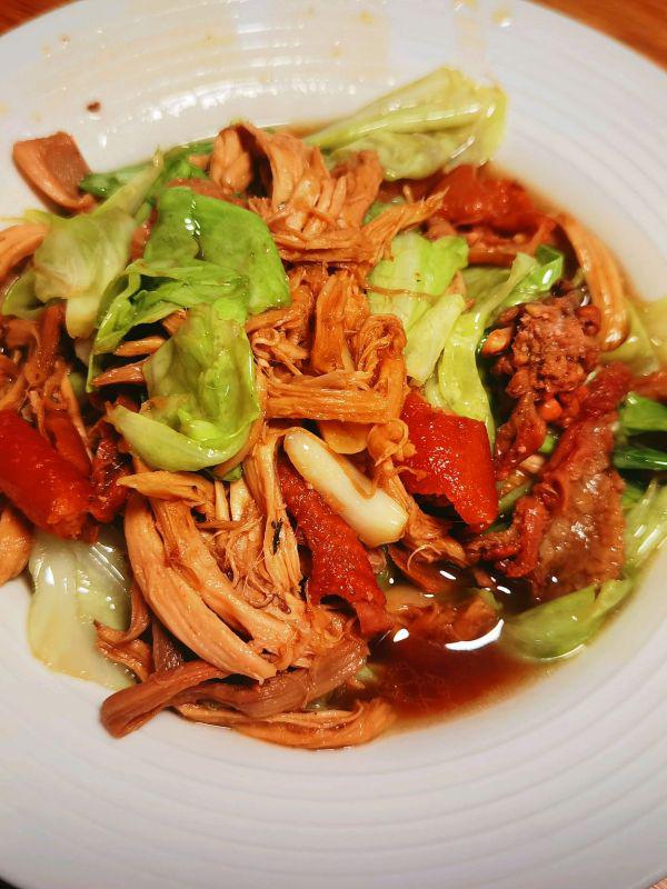 6、锅内加入一些温水,翻炒,汤汁滚动。可以出锅。