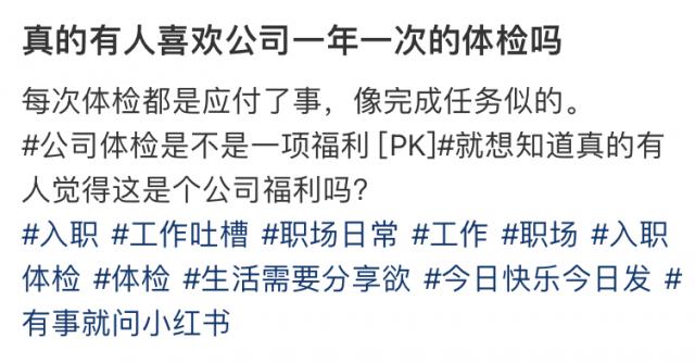 有网友在社交平台上提问:“真的有人喜欢公司一年一次的体检吗?” / 小红书截图
