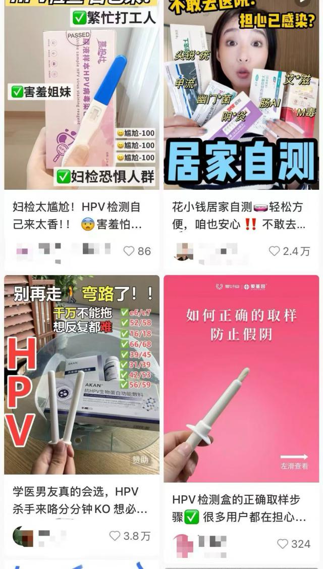 各种各样的“便隐血自测”和“社交媒体” HPV 自测试试剂。图片 / 小红书截图