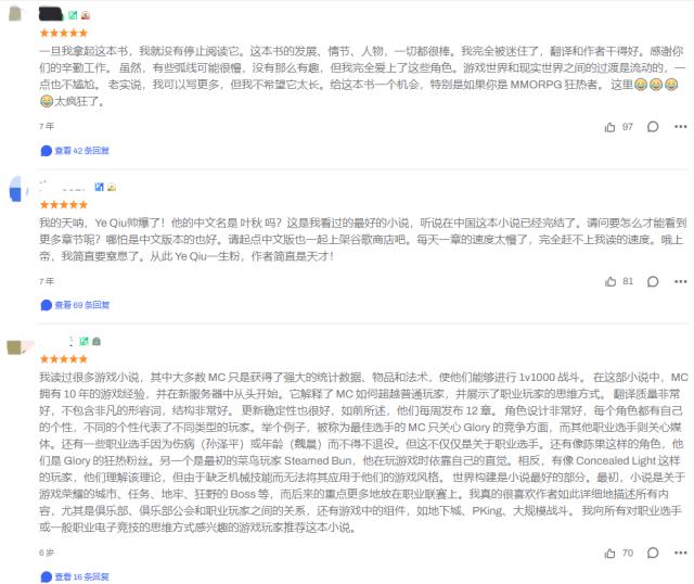“全职高手”也推动了其他亚文化的全球科普。在国外网文平台上 WebNovel在英文版《全职高手》的评论区,大量海外网友对网络游戏小说水平的提升感到惊讶,有网友直接表示,“全职高手让电子竞技文化通过网络文化进行科普,甚至比真正流行的电子竞技还要先进”。