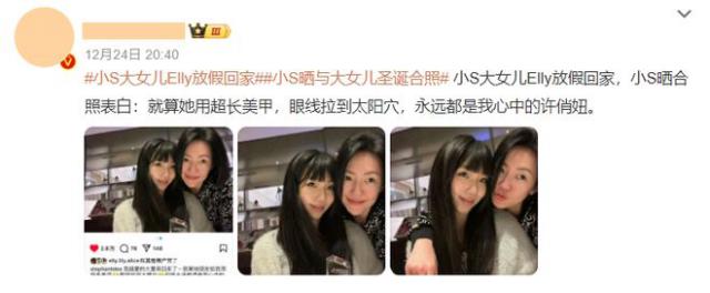 小除与闺女合照外, S 圣诞节那天还分享了一张家庭照片。事实上,小 S 自结婚以来,很少分享出身家庭的照片,观众也很久没有看到徐家三姐妹同框了。