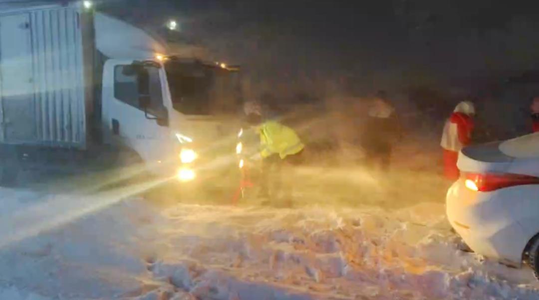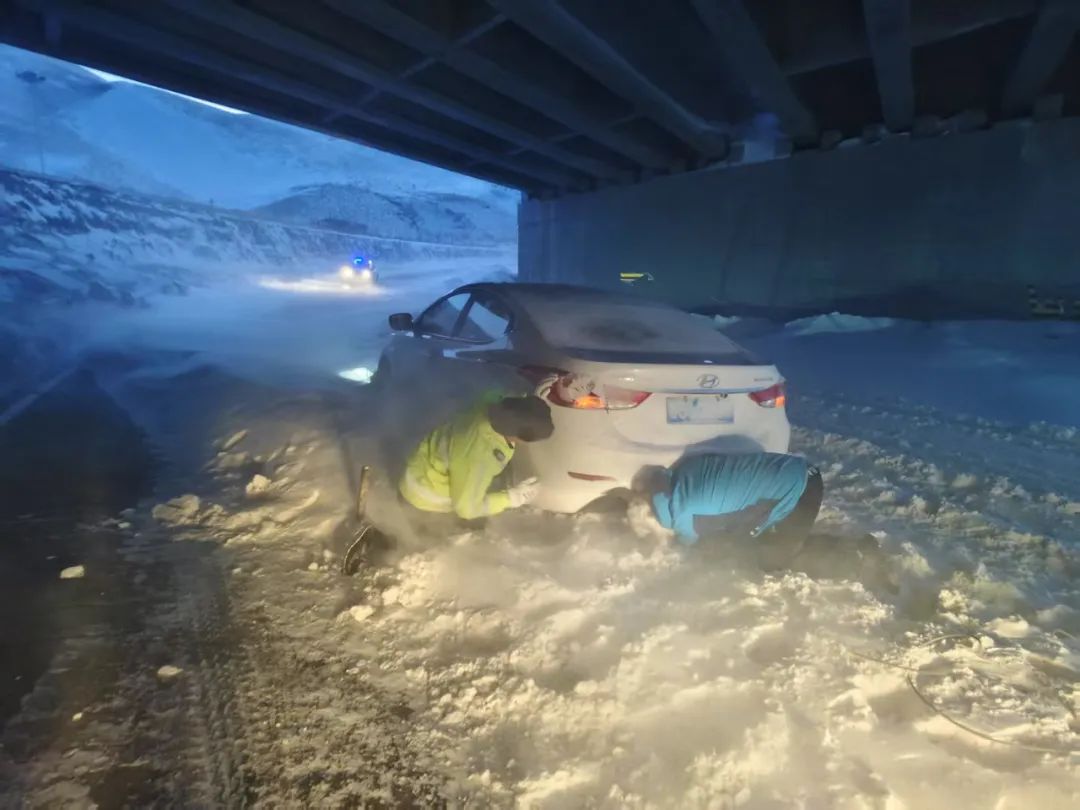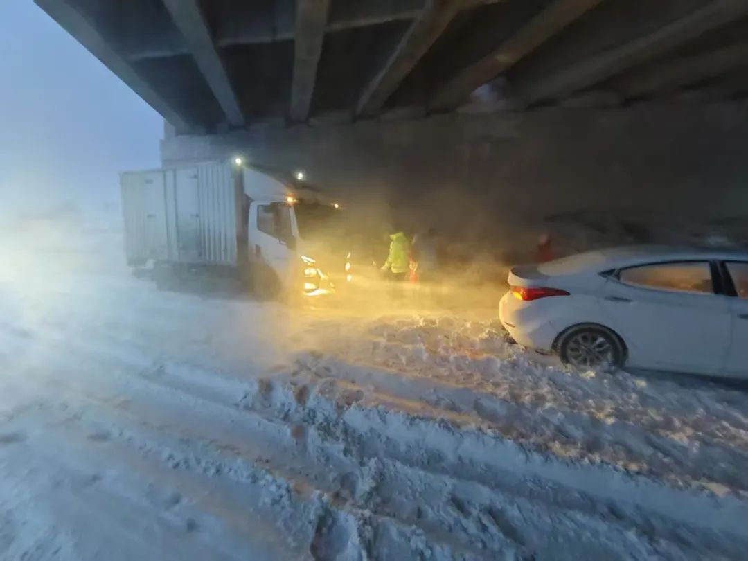原题:“严重风吹雪!一家人被困在涵洞雪窝里,交警来了!