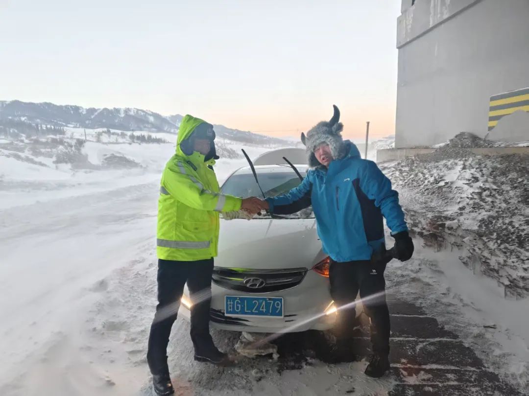 解困后,张某握着警察的手感谢道:“春节回家,真没想到路上会遇到这种情况。第一次看到这么大的风雪。来新疆的时候听说新疆交警的服务是最好的。这次我亲身经历过。谢谢大家!”