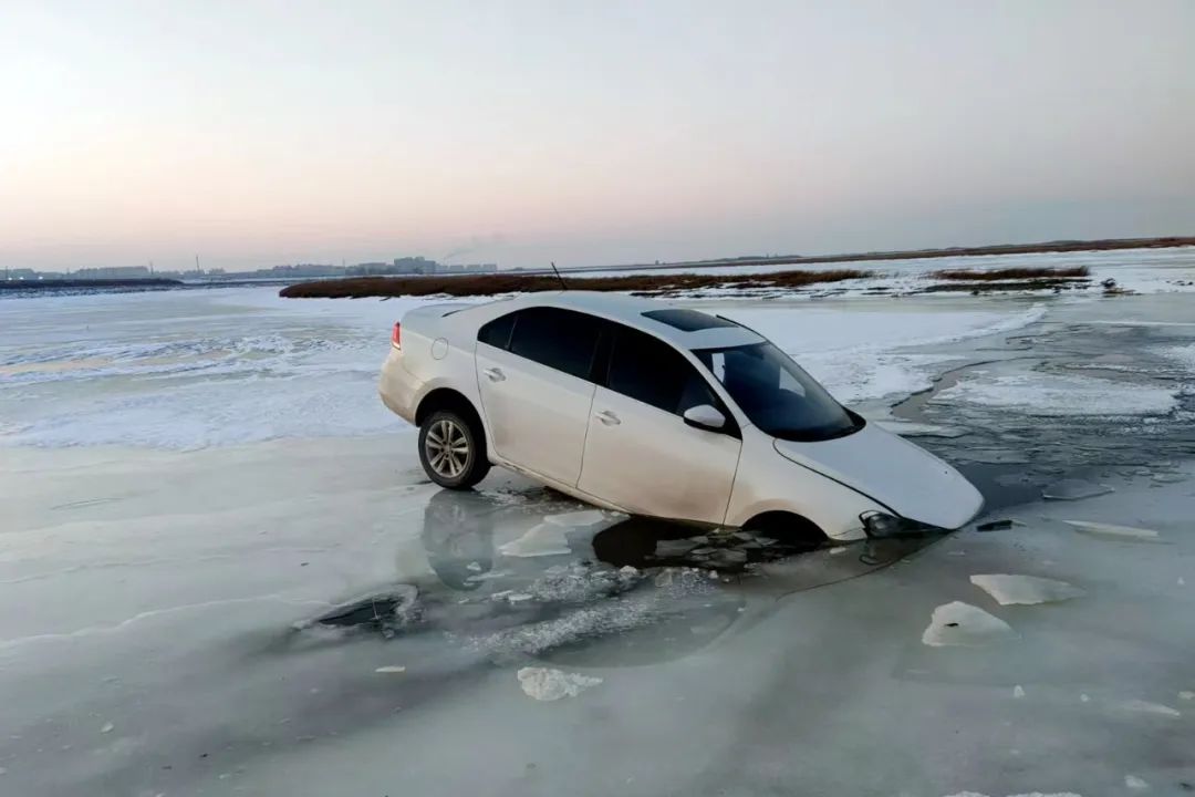 当天16点左右,一个急促的求助电话打破了大派出所的平静。市民沈先生焦急地向警方求助,称自己在驾驶车辆时不小心掉进了冰里。接到报警后,警方迅速询问了事件的具体位置,然后立即赶往现场。当他到达现场时,沈先生成功逃离了汽车,尽管他及时做出了反应,但他的汽车前半部分已经掉进了冰洞,随时都有掉进冰洞的危险。