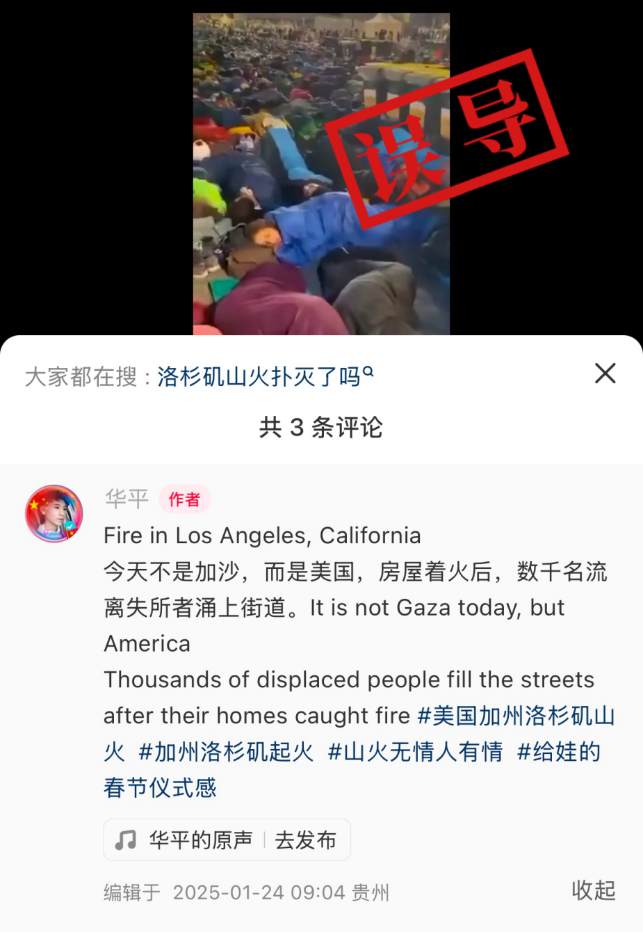 明查|录像显示洛杉矶山火灾民居没有固定的地方,露宿街道?