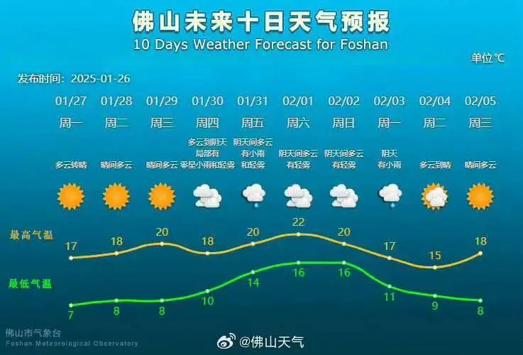 最低7℃!佛山春节假期天气出炉