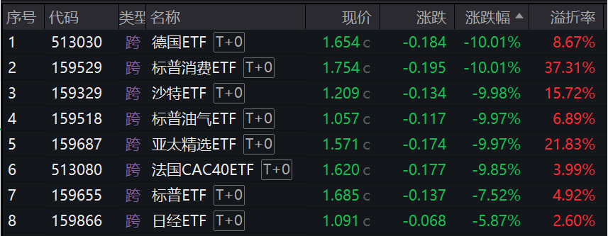 事实上,早期流行的海外ETF风险已经开始集中释放,今天,沙特ETF风险已经开始释放。、德国ETF、ETF标普消费、标普油气ETF等均以跌停收盘。