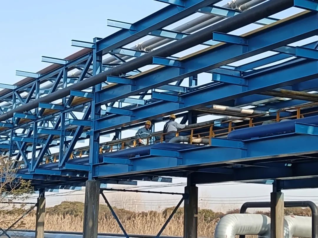 自2017年起,公司对工厂西管廊进行了隐患治理,新建了一座10米宽的三层管廊,管架上铺设了22条管道。施工涉及管道拆除、光缆转移、土方回填等工作,以及机场、燃气公司等单位,工作难度较大。2022年完成施工,同年完成厂际化工管道隐患治理,克服了管架结构吊装、跨桥桁架安装、高压电缆、燃气线、光缆等转移操作的“硬骨头”。
