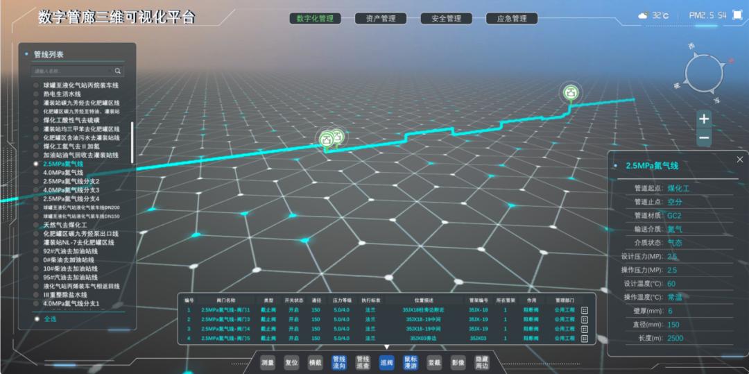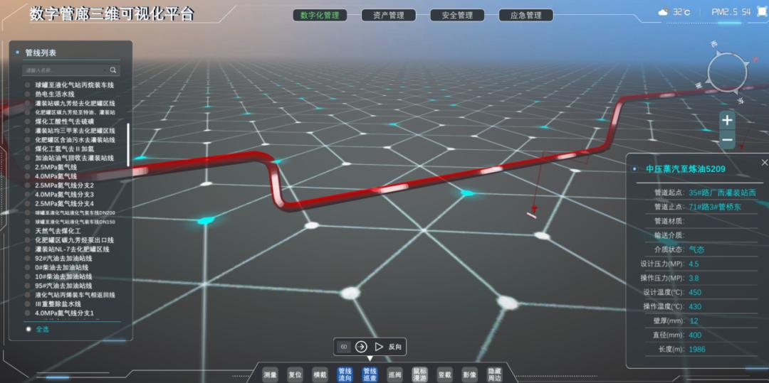目前,公司正在推进管道走廊数字化升级,利用数字孪生、云计算、视觉分析等技术,对管道走廊和工厂内外系统管道进行数字化重建,构建“分布方向、管道及附着物结构、空间布局”清晰的三维管道模型,明确生产“经络”,提高管道安全管理水平。