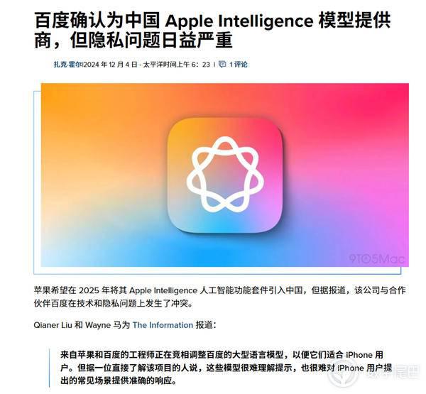 根据多方消息,苹果正秘密与百度合作,打造中国大陆版。 Apple Intelligence(Apple 智能化),为了配备最新版本的苹果设备,迎合当前风头正盛的苹果设备。 AI 浪潮。
