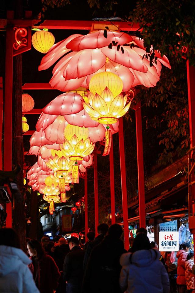 红星新闻网(记者) 李慧颖)1 月 28 日报道 祠堂迎新年,福满古韵。1 月 27 日 19:00,在炫目的灯光秀气氛下,由成都市文化旅游局、武侯区人民政府主办,成都市武侯祠博物馆、武侯区文化体育旅游局承办。 2025 成都武侯祠大庙会正式开庙。