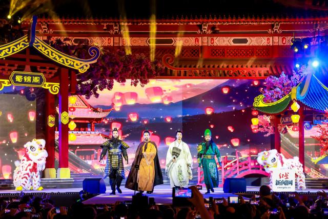今年,一场关于三国文化的奇思“庙”的主题表演《武侯奇“庙”夜》在开庙当天吸引了大量观众。表演舞台以真实场景呈现,融合了汉代中国建筑的精髓和裸眼。 3D 多媒体数字技术、歌舞、杂技、戏曲等多种艺术形式,生动呈现了三国蜀汉烟火市场、蜀宫夜宴、五虎战场篝火等主题场景。