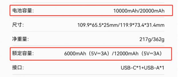 如果你仔细检查充电宝说明书或电子商务页面上的产品参数,你可能会发现其实有两个描述充电宝容量参数值:电池电量和额定容量。