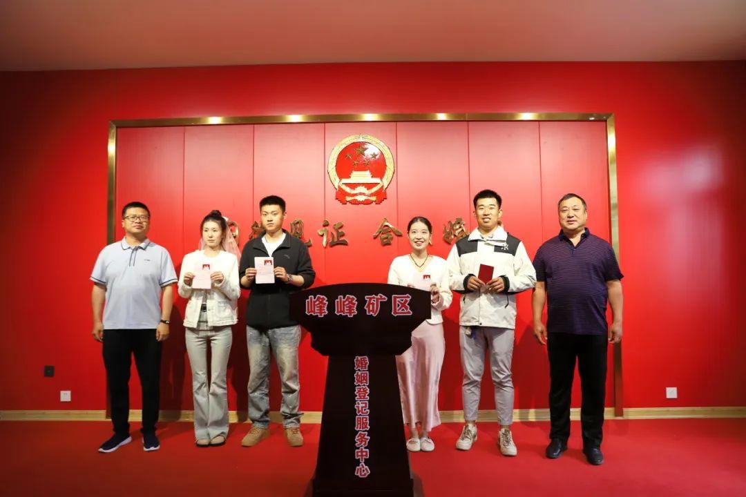 集体婚礼“两个仪式”创新完婚颁证,婚俗新礼仪推动新时尚。2024年峰峰矿区集体婚礼暨相亲交友活动“缘分是你,爱在峰峰”举行。五对情侣自觉抵制陈规陋习,践行婚俗文明新时尚。与此同时,将颁证仪式引入婚姻登记流程,实现正常的颁证服务。邀请省内最美家庭代表作为“5.20”七夕等其他登记日的“特邀颁证员”,为新人集体颁证,传递婚俗新风。2024年累计颁证服务751对,定格新手浪漫时刻。