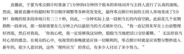 问题是,直播是灵活的,想要整分整秒进入新年,全靠主持人当场添词或减词,所以直播是终点也是起点。