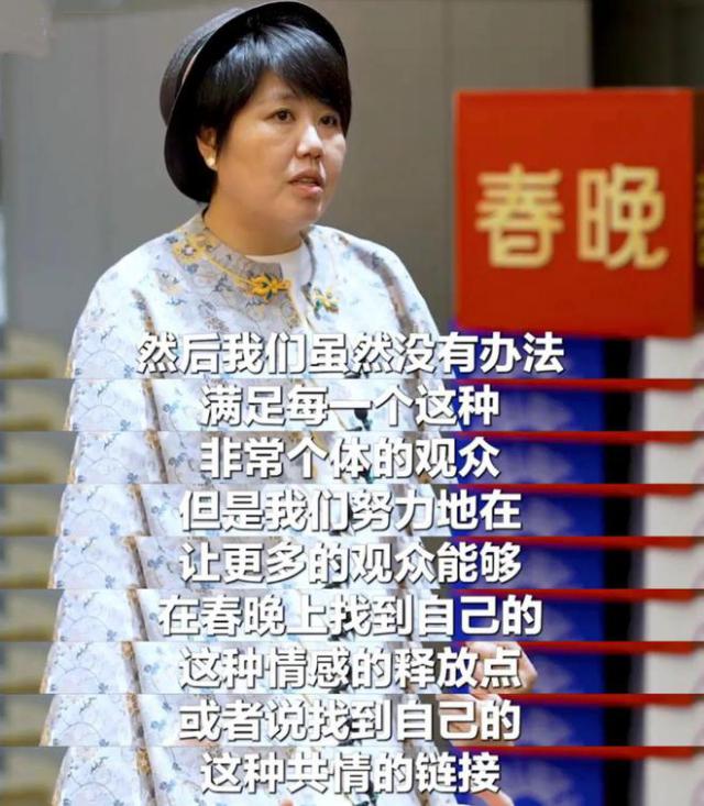 她一直认为,四个半小时的春晚并不能满足每一个个体观众,但她会努力让观众在春晚找到自己的情感释放点,或者找到自己的共情链接。
