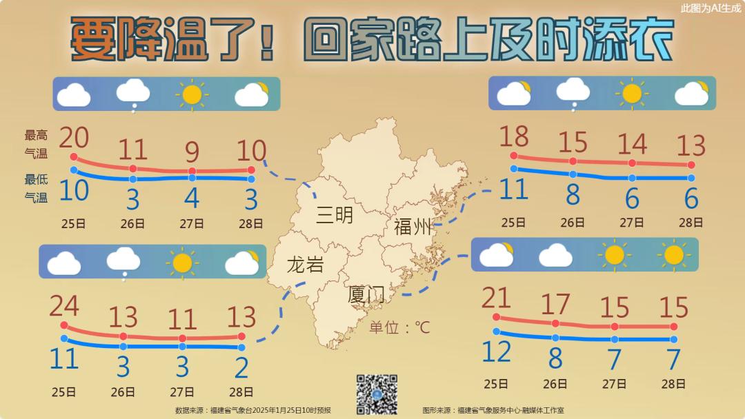 冷空气大军压力大,我市天气晴朗,但凉爽。城市最高气温15℃,夜间城市最低气温降至7℃,岛外靠山地区2℃。~北部高海拔山区仅为-1℃。~2℃,或者有霜冻或者结冰,市民走亲访友要注意防寒保暖。