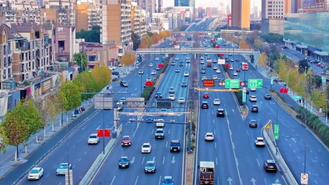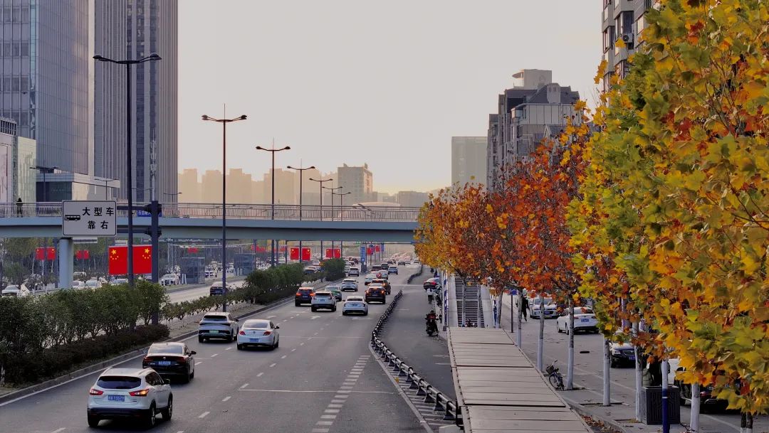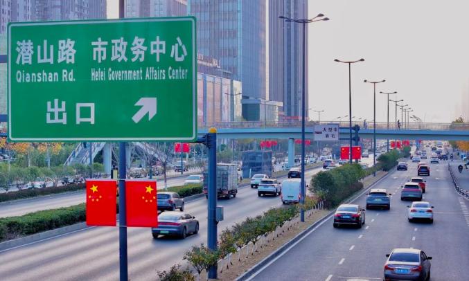 长江西路高架、南一环等路段,一面五星红旗迎风飘扬。街头巷尾点缀着鲜艳的五星红旗,形成了一道亮丽的风景。