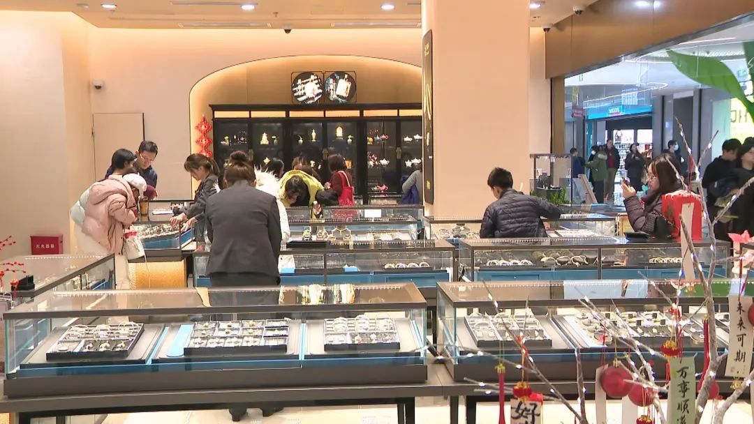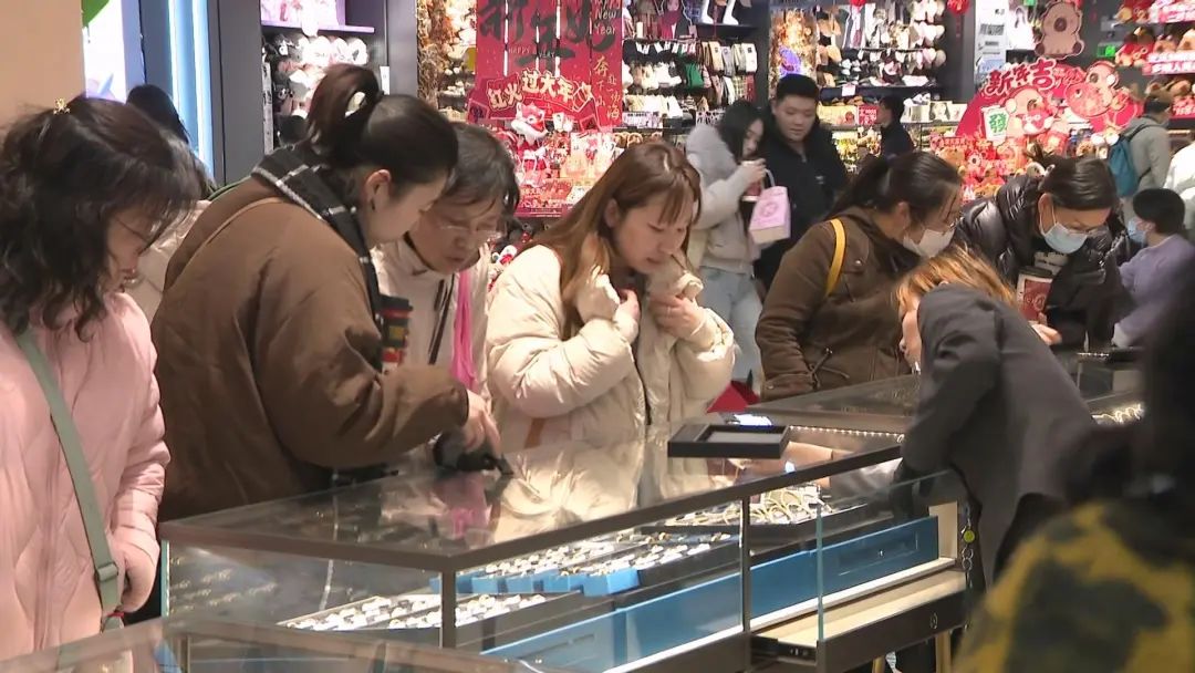 在上海城市地标豫园等地,这里聚集了很多金店,各种品牌的老金店人头攒动,不断有消费者来买黄金。市民徐先生看到最近黄金价格在上涨,借此机会在春节前与家人一起购买黄金,“给家人买一点,一年到头”。市民孙女士告诉记者:“我想看看最近有什么新款式,买一些。”