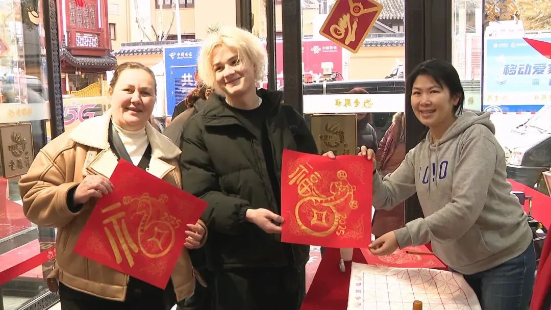 “我希望得到一些书法家的祝福,给家人带来一些祝福。我希望明年会更繁荣。”一位刚拿到书法家写的祝福的旅行者非常高兴。旁边的孩子兴奋地告诉记者:“这种祝福就像一条蛇。希望明年我和爸爸妈妈平安健康。”。