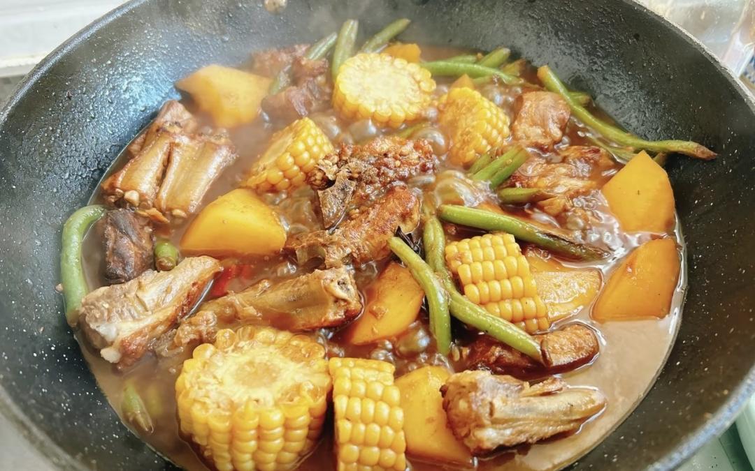 我的家乡是最近火出圈的“尔滨”(当地人已经“哈”不出来了),同时也让当地人感到陌生。提到“尔滨”的美食,被放在盘子里的冻梨大家一定都很熟悉。此外,还有“锅包又”、“没有什么是烧烤解决不了的”的东北烤串,被麻酱包裹着粘粘的串香。今天想推荐一款传统的东北炖菜——“大丰收”。食材包括肥瘦相间的排骨、嘎嘎面糊的土豆、美味柔软的糯米、新鲜酥脆的豆类。有的餐厅还会加一圈玉米面饼,营养丰富,口味独特。甚至名字也透露出东北人对美好生活的乐观向往。