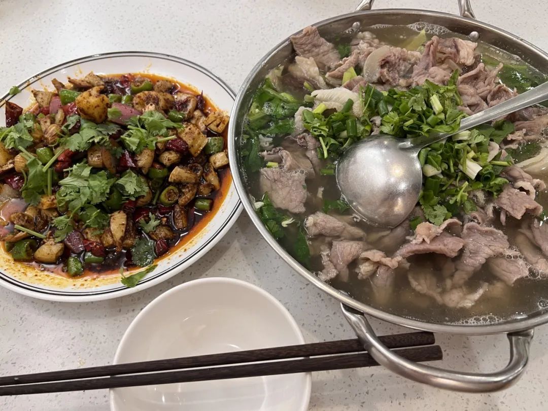 跷脚牛肉起源于四川乐山。通岐黄的中医把牛杂放在悬锅里煮药。汤很好吃,可以预防疼痛。食客络绎不绝,翘着腿吃。牛肉翘起来的是牛肉汤的热气,是团圆的期待,是食客的爽朗,是锤炼前行的记忆,是预防疾病和治疗疼痛的初衷,也是对世界的不畏风雨。