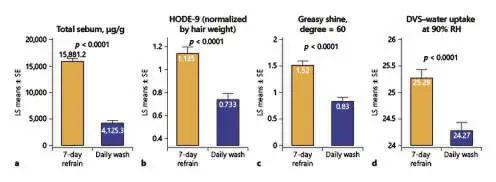 不怎么洗头转化为经常洗头的人,还会显著降低头皮皮脂水平、脱落水平、氧化皮脂量和头皮味等。