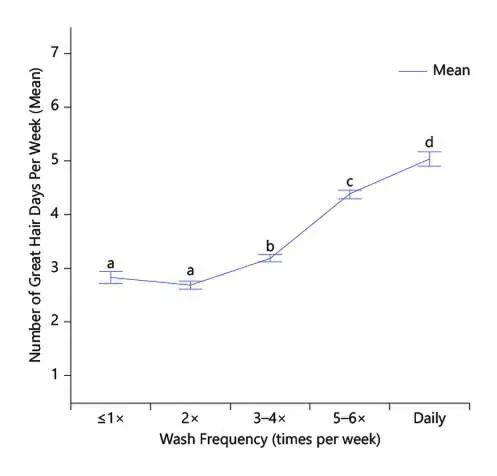 随着洗头频率的增加,团队成员每周对整体头发状况满意的天数明显增加。