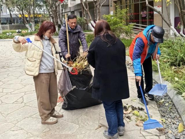 现场,在小区绿化带、电动车棚、脏乱差等场所,大家仔细清理了杂草、枯枝落叶、隐藏在其中的垃圾和杂物;运输和清理走廊内长期堆放的废旧家具和易燃物品,做到“三清三关”,不给火灾隐患机会。在进出口和后街小巷,每个人都整齐地摆放杂乱的自行车共享,并向过去的居民宣传垃圾分类,激发他们的参与热情。