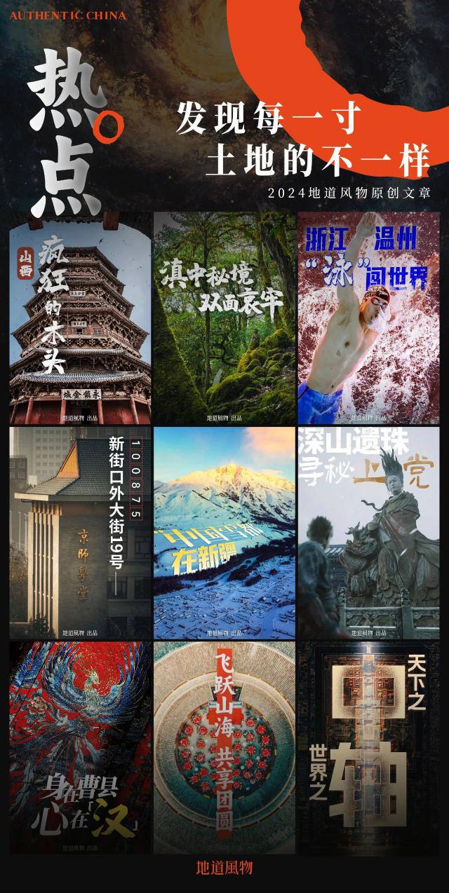 同时,我们也一起打卡热门。 IP古代建筑《黑神话》中的奇景,探索了神秘云南滇中秘境哀牢山,进入中国游水之乡浙江温州潘展乐老家,来到中国汉服第一城曹县山东菏泽,领略云南西双版纳狂野的边境魅力,遇见 2024 远处是中国人心中最柔软的地方。新疆阿勒泰;见证了北京中心线成功的申遗…无数精彩的瞬间,都是独一无二的珍贵回忆。