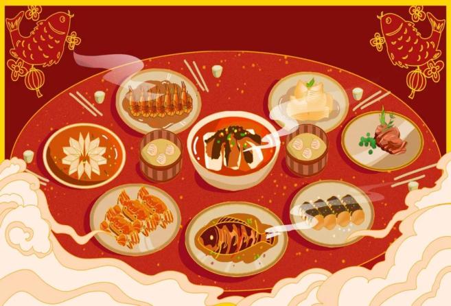 作为除夕守年的亮点,家家户户都要准备一顿丰盛的团圆饭。团圆饭代表团圆,体现了一家人的真情实感,蕴含着一个家庭独特的味道,也被称为“团圆饭”和“家庭幸福”。在我们中国人心中,每个人都有一桌自己家的团圆饭。除夕夜,东北人包饺子,南方人做年糕。饺子形似“元宝”,年糕的声音像“年高”,都是吉祥如意的好运。因为“鱼”和“余”是同音异义的,代表吉祥,所以“没有鱼就没有座位”,除夕吃团圆饭的时候,鱼是吃不完的,也就是说年年有余。