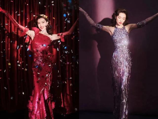 另外一个身体来自 Rachel Lai 紫亮片裙,看起来像是 90 年代艳丽的美人。