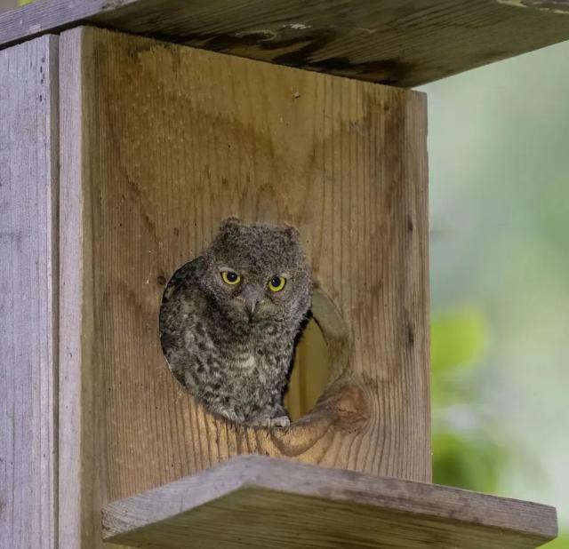 在巢箱里喂一只小鸡,红角邈叼鳃金龟。 © 大猫