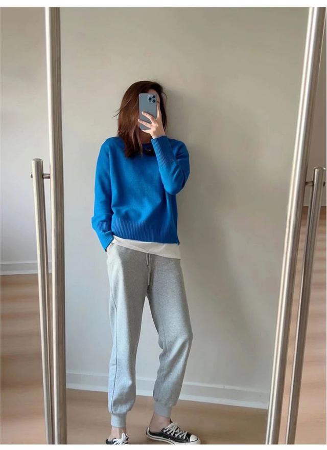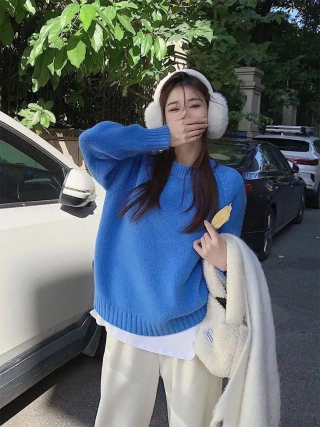 与“美拉德”相比,它更低调、更克制,但不失优雅和品味。尤其是冬天,穿蓝色毛衣不仅能保暖,还能让你的气质更干净更高级。