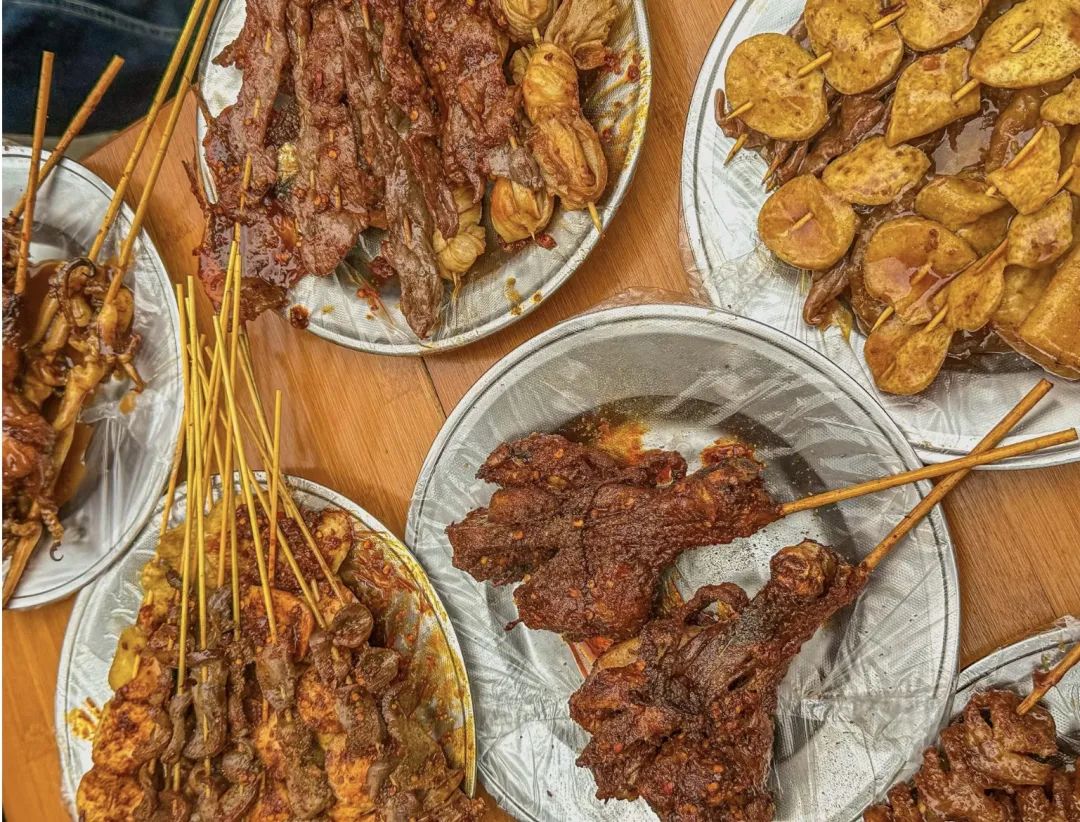 这种“噼里啪啦”的声音来自炸串摊。炸串在金黄色的油中迅速变色,穿上酥脆的外壳。摊主捞出炸串,然后用柔软的刷子蘸上麻辣调料,迅速涂上刚出锅的炸串。咬一口后,油和辣椒的香味在唇齿间久久不散!