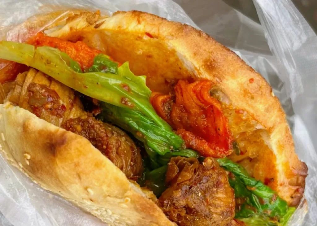 这两种美味的小吃结合在一起,变成了美味的烧饼夹里脊,是碳水化合物满分,也是快乐满分!