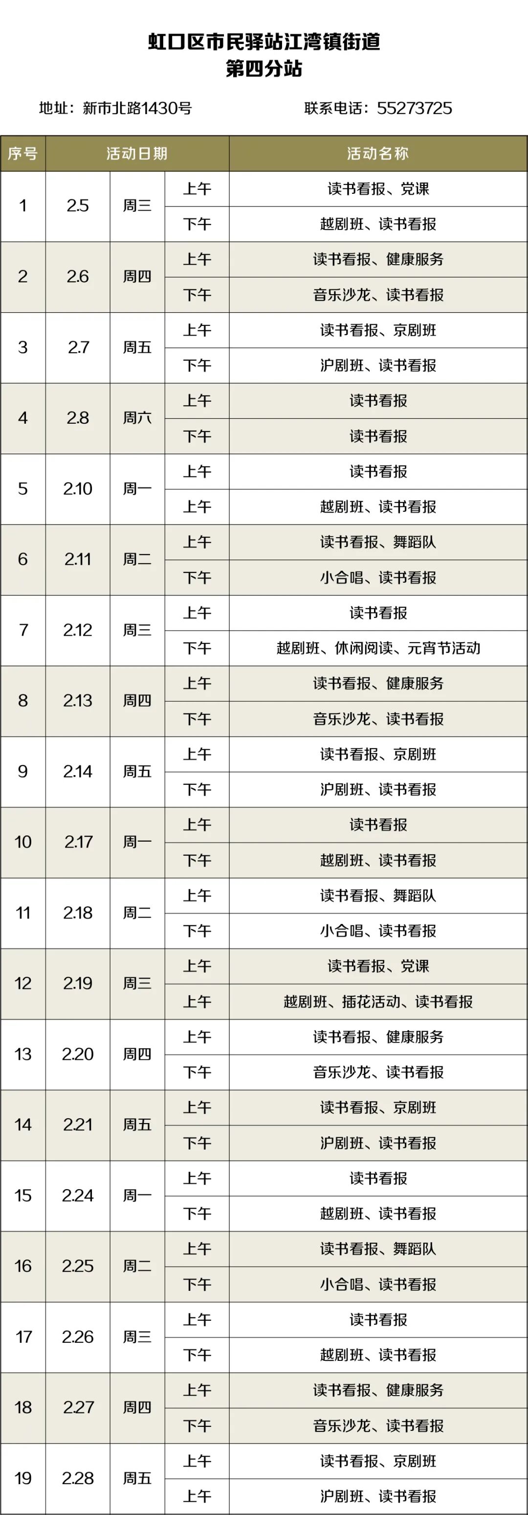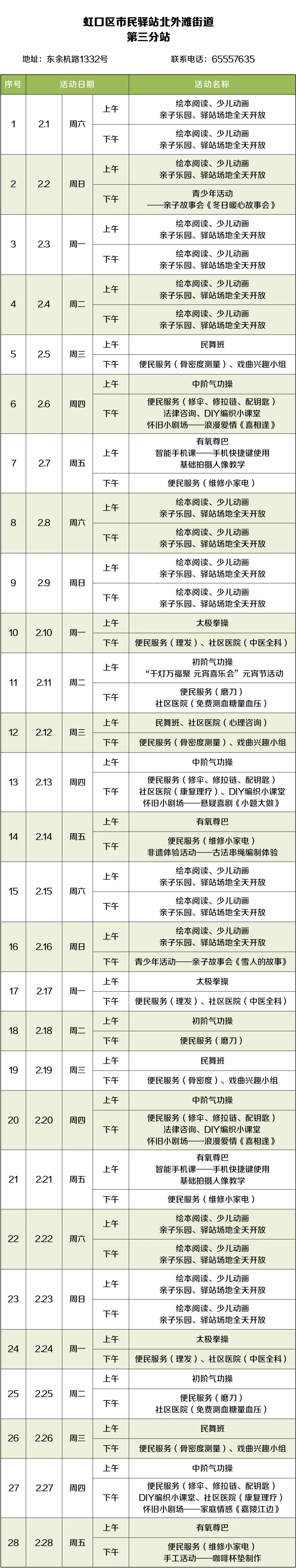 原题:“春节假期去哪儿?2025年2月虹口市民驿站活动计划来了~”