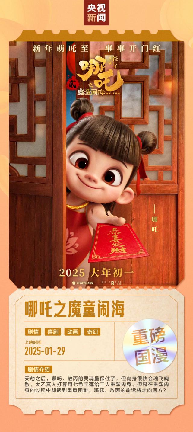 2025 几乎所有的春节档电影,都有强大的。品牌基础,受众普遍,市场潜力巨大。经典武术、重磅国家漫画、神话新篇、《唐探》前传、亲子经典、《人气》续集等。,主题丰富,备受期待!