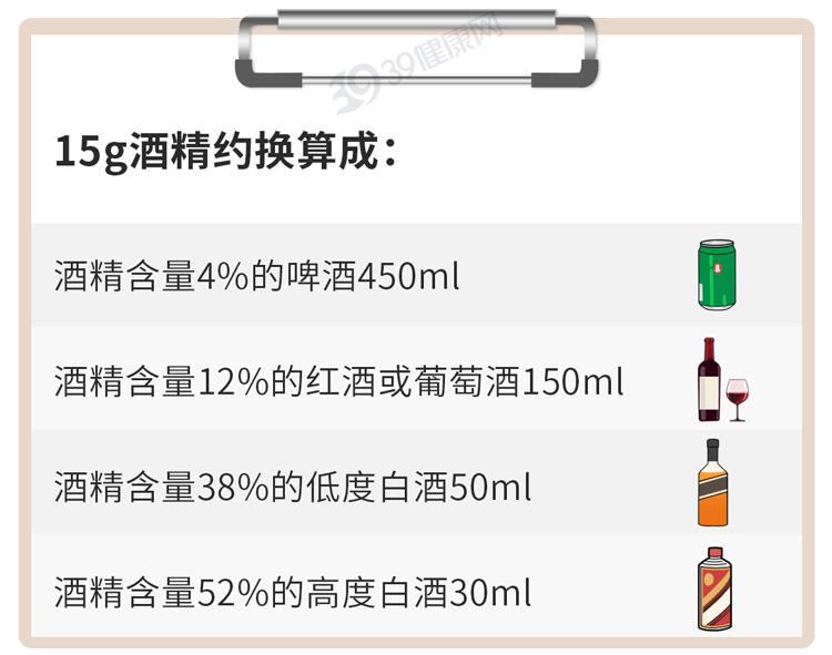 根据中国居民膳食指南(2022版):成年人若要饮酒,每天饮用的酒精量不得超过15g。