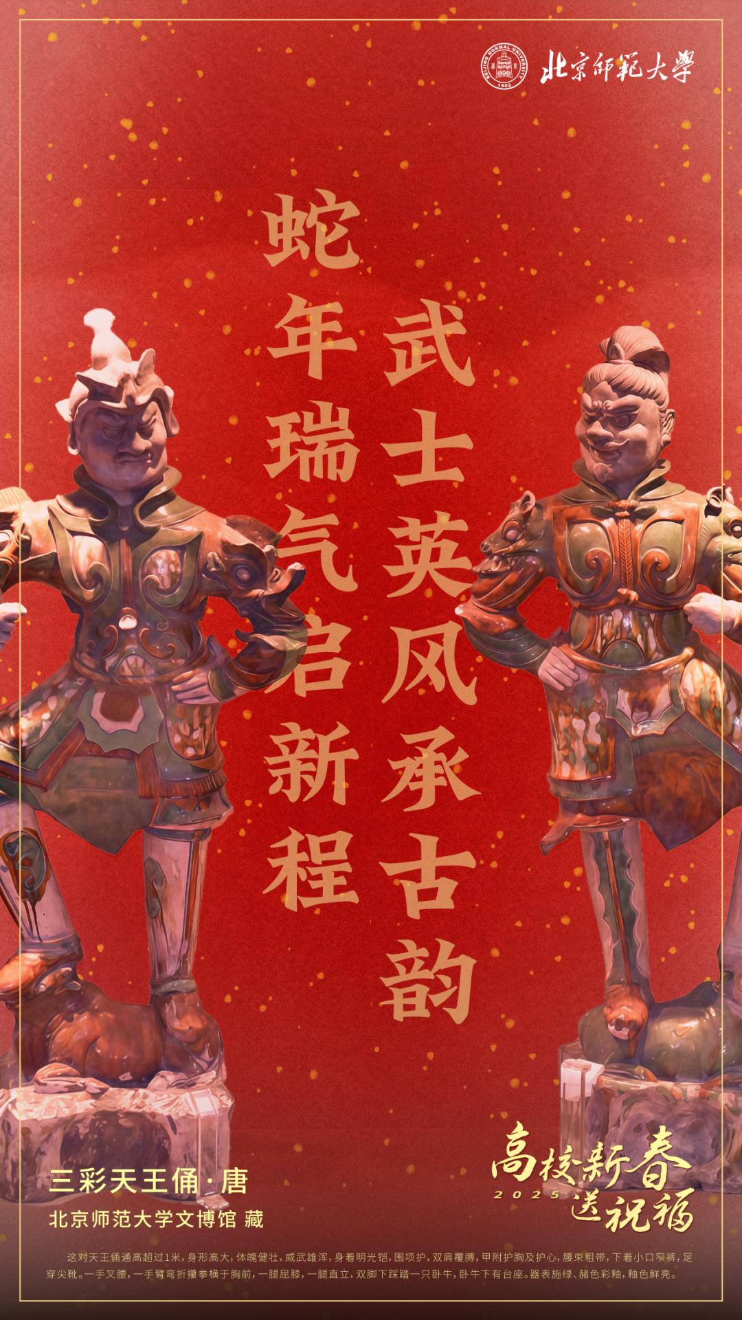 2024年12月,当选联合国教科文组织人类非物质遗产代表作为“春节-中国人庆祝传统新年社会实践”名单。春节是2025年第一个“非遗版”春节。春节期间,北京师范大学、华东师范大学、东北师范大学、华中师范大学、陕西师范大学、西南大学聚焦传统文化传承创新,探索收藏资源,以文物贺春的方式打造“年味”教育思想政治课堂。六所师范大学携手送上新年祝福,一起感受中国“范”儿在大学博物馆的中国。→