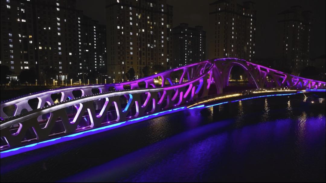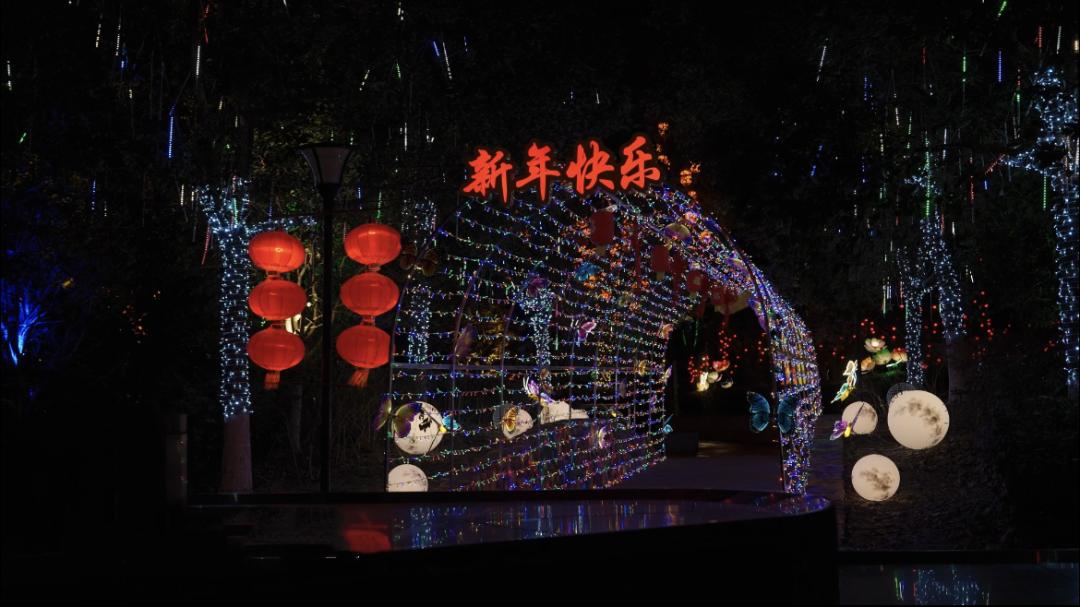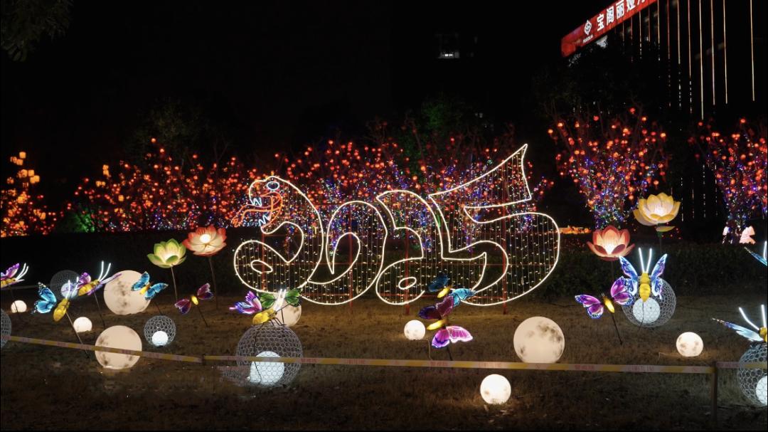 春节期间,青浦区盈浦街道的夜空被一场盛大的灯光秀照亮,宛如一幅绚丽多彩的画卷。旅游景点、环城水系公园、各大商贸体纷纷加入这场光影盛会,共同演绎了青浦版的“豫园灯会”,为居民带来了精彩的视觉盛宴。