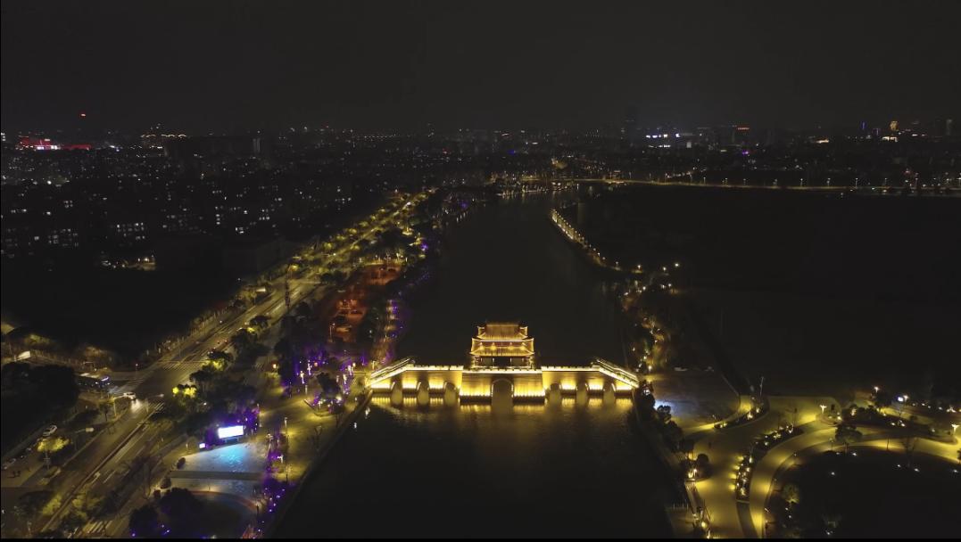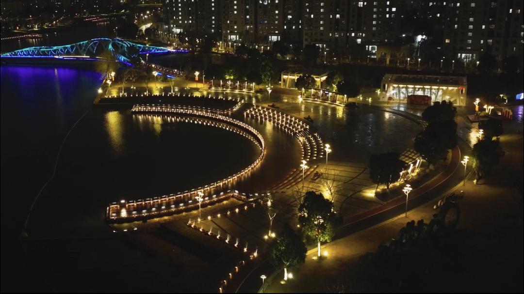 环城水系公园有一种独特的味道。在善良的广场上,善良的桥梁被蓝绿色和紫色渐变的灯光包裹着,就像一条华丽的腰带,为整个广场增添了许多明亮和华丽。喷泉、围栏等。也被金光点缀,让人眼前一亮。居民们在灯光下漫步,都感受到了梦想和浪漫。水城门的灯光气势恢宏,周围的红灯笼和树木灯笼传递着浓浓的年味。