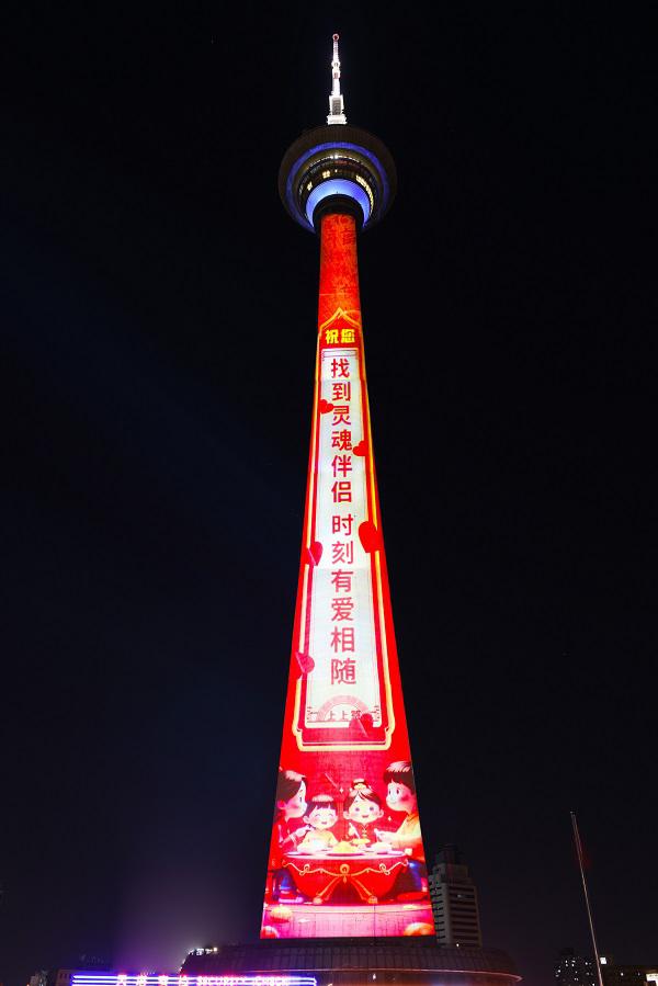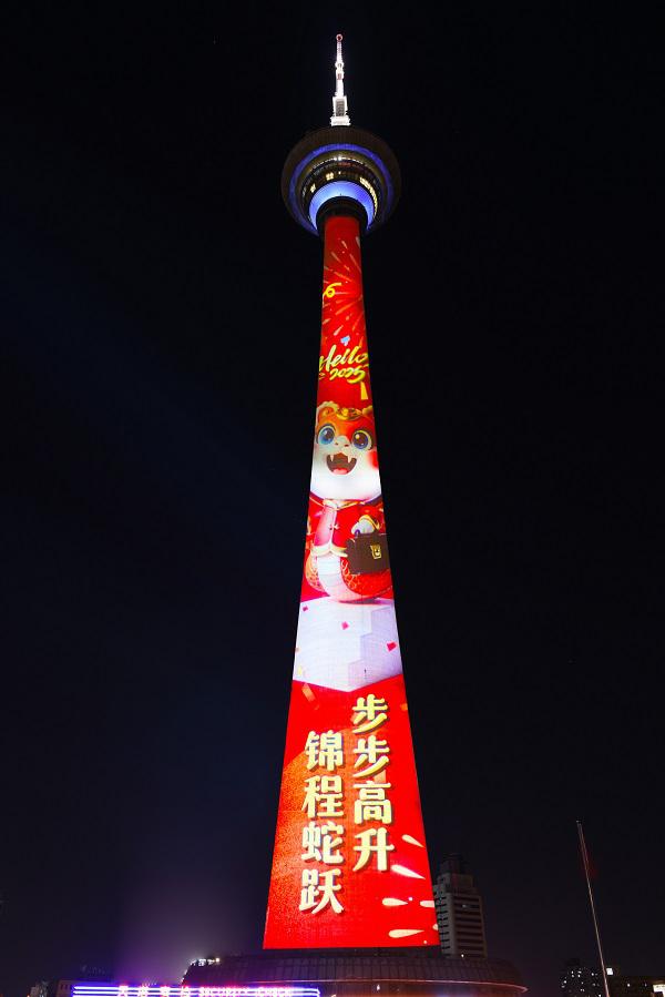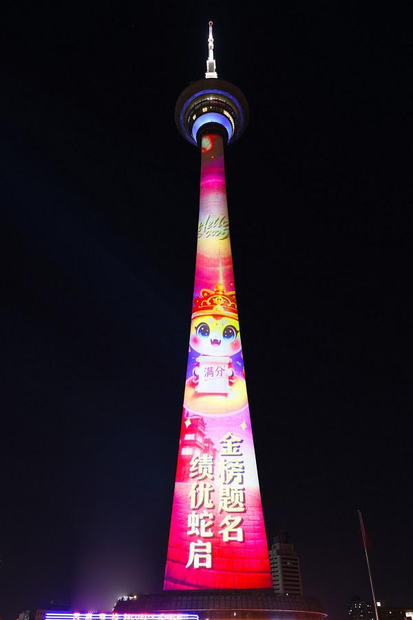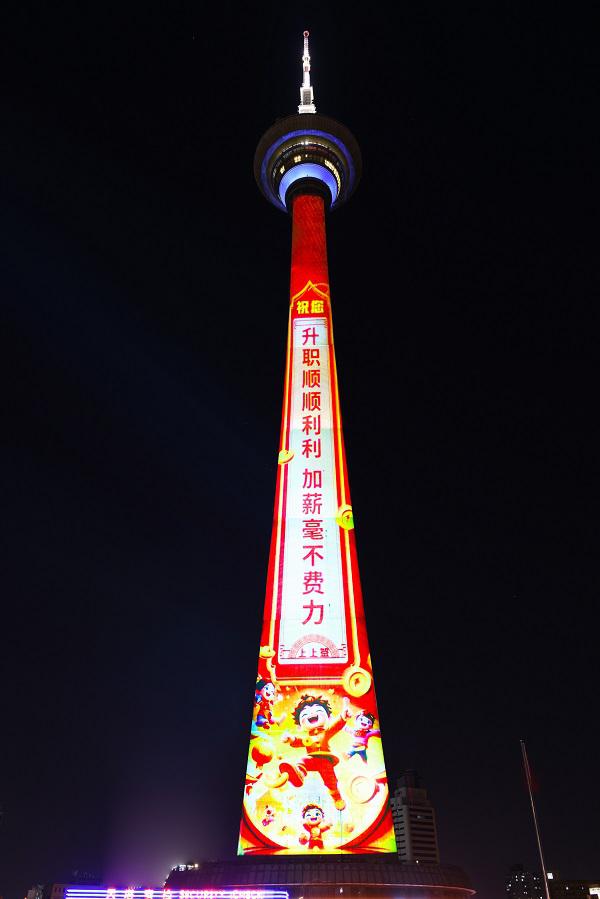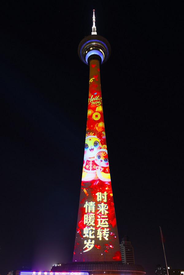 天塔除夕主题灯光秀“蛇年迎春” “天塔上签”